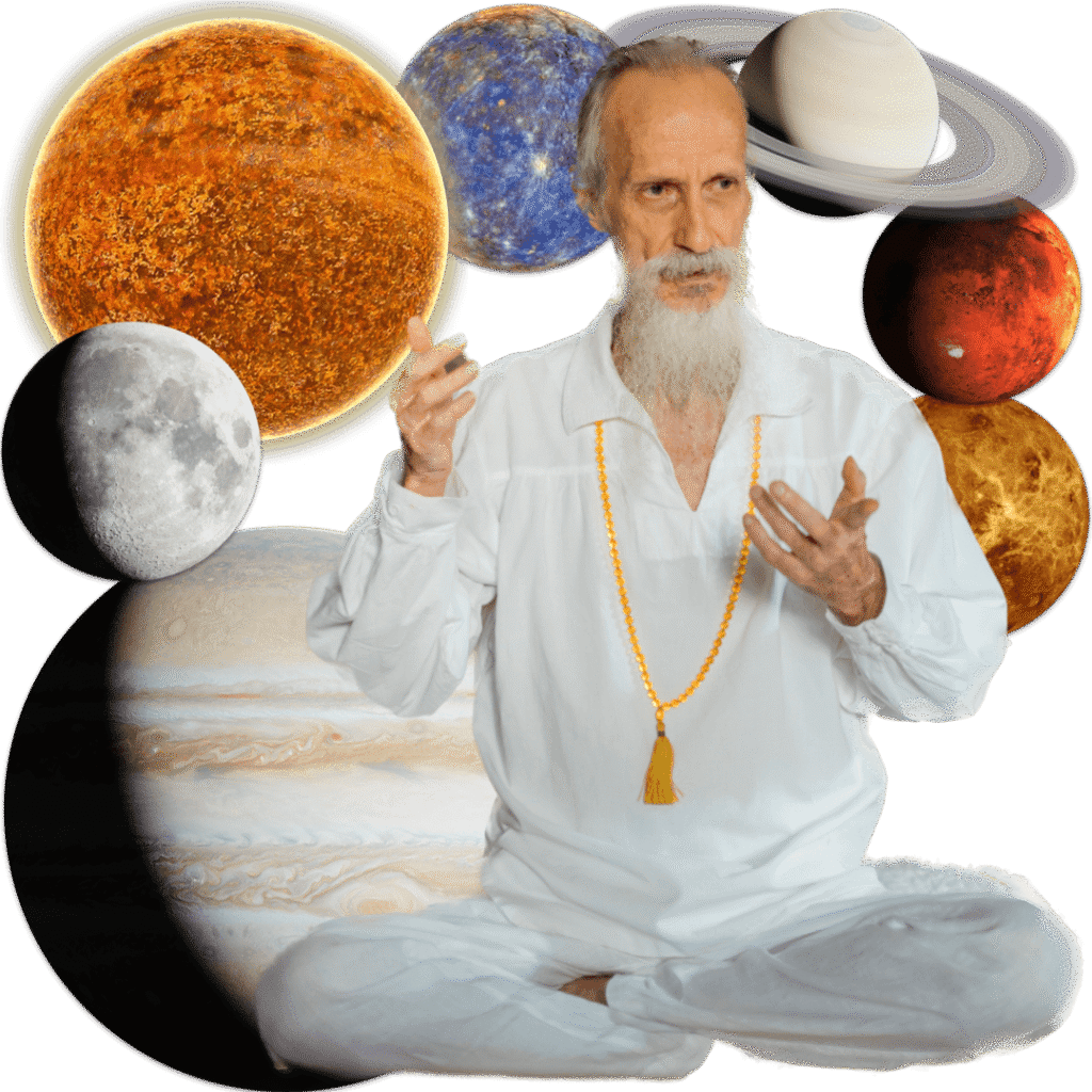 Rather than teaching astrology as abstract information, he guides students in how to work with cosmic timing, planetary intelligence, and personal chart wisdom through breath, mantra, mudra, meditation, and daily practice.