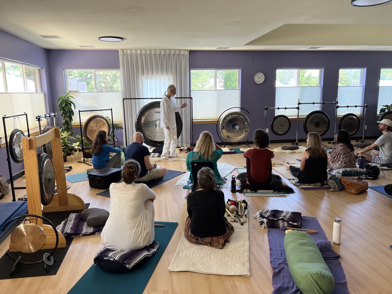 Mehtab teaching about the gong to a class