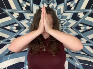 - Bring the hands back to the heart in prayer pose and then move them back up to the brow point.
